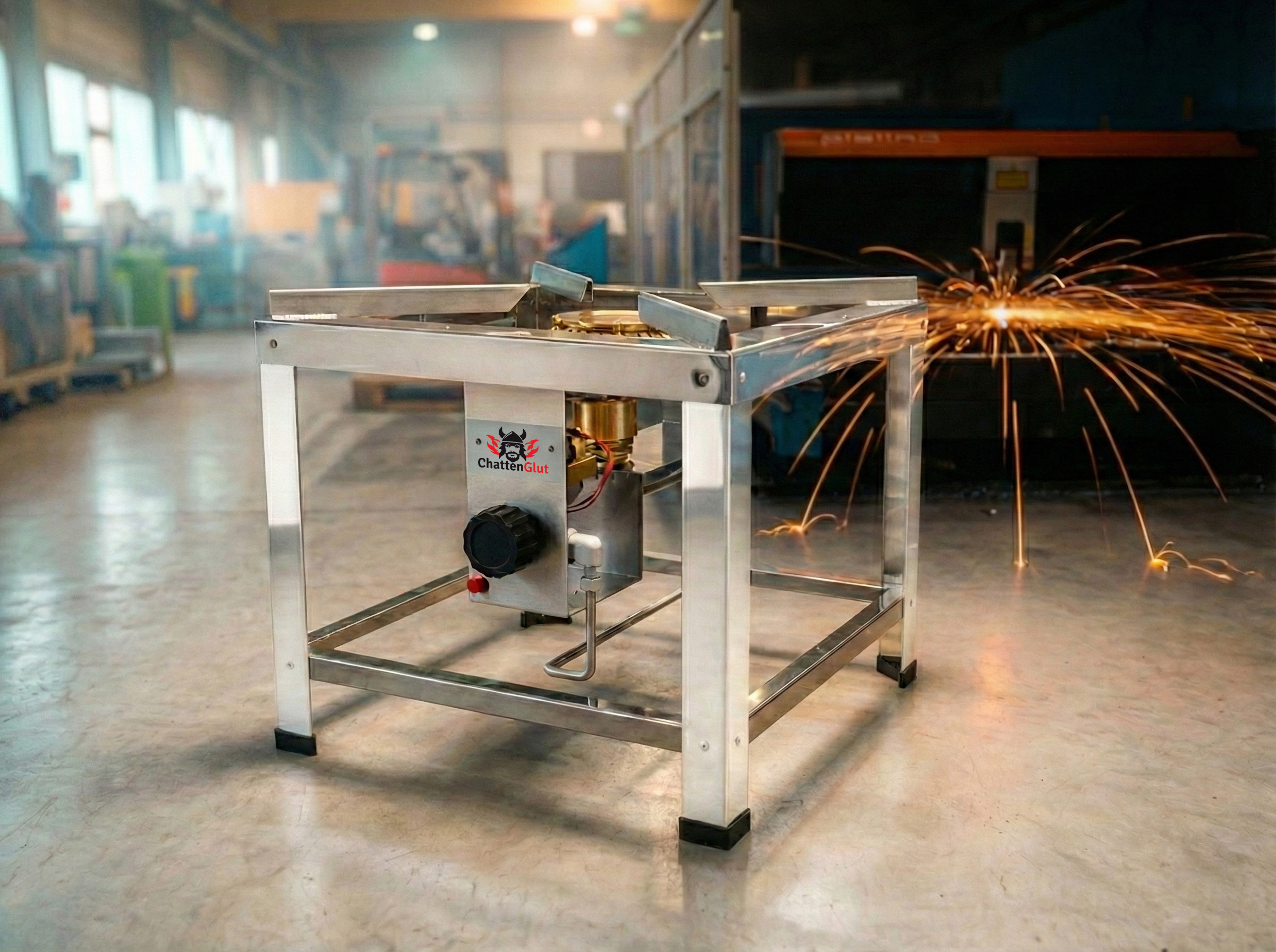 Mit einer Nennleistung von 11 kW bietet der Brenner die nötige Energie, um große Flüssigkeitsmengen zügig zu erhitzen. Die robuste Konstruktion unterstützt dabei Topfdurchmesser im Bereich von 540 mm, was den sicheren Einsatz von Großgebinden bis ca. 75 Liter ermöglicht – ideal für Eintöpfe oder die Wasseraufbereitung.